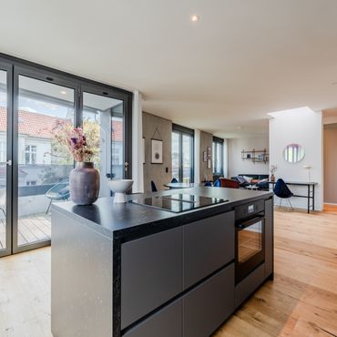 Hochwertig möblierte Dachgeschosswohnung mit Süd-Ost-Terrasse und offenem Grundriss