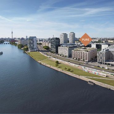 Helle und moderne Wohnung an der Berliner Mauer mit Blick auf die Spree