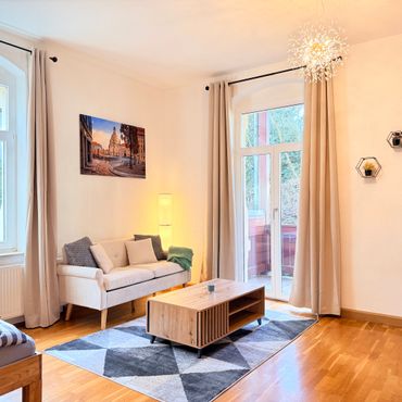 Stilvolle, voll möblierte 1-Raum-Wohnung mit separater Küche, Bad und großem Balkon in Dresden-Trachau