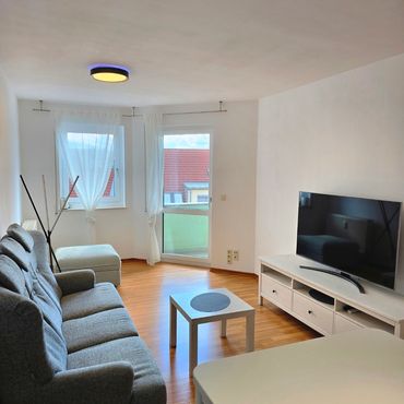 Helle vollmöblierte 1-Zimmer-Wohnung direkt an der Leipziger Messe mit Parkplatz + WIFI