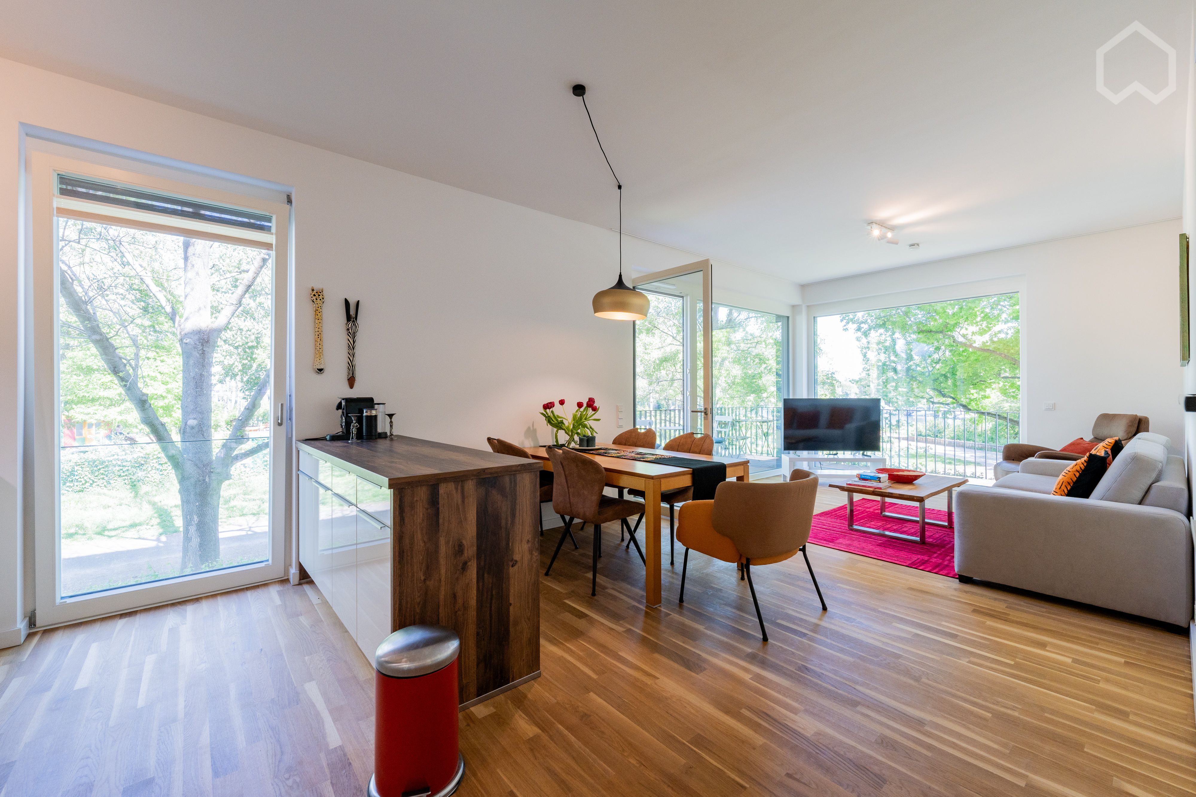 Neue und stilvolle Wohnung auf Zeit mit Blick auf die Alte Spree gegenüber der Baumgarteninsel