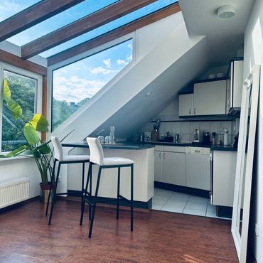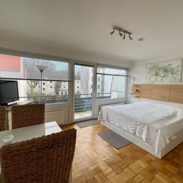 Vollmöbliertes, stilvolles Apartment mit offener Küche, WiFi, nähe Flughafen/ Messe