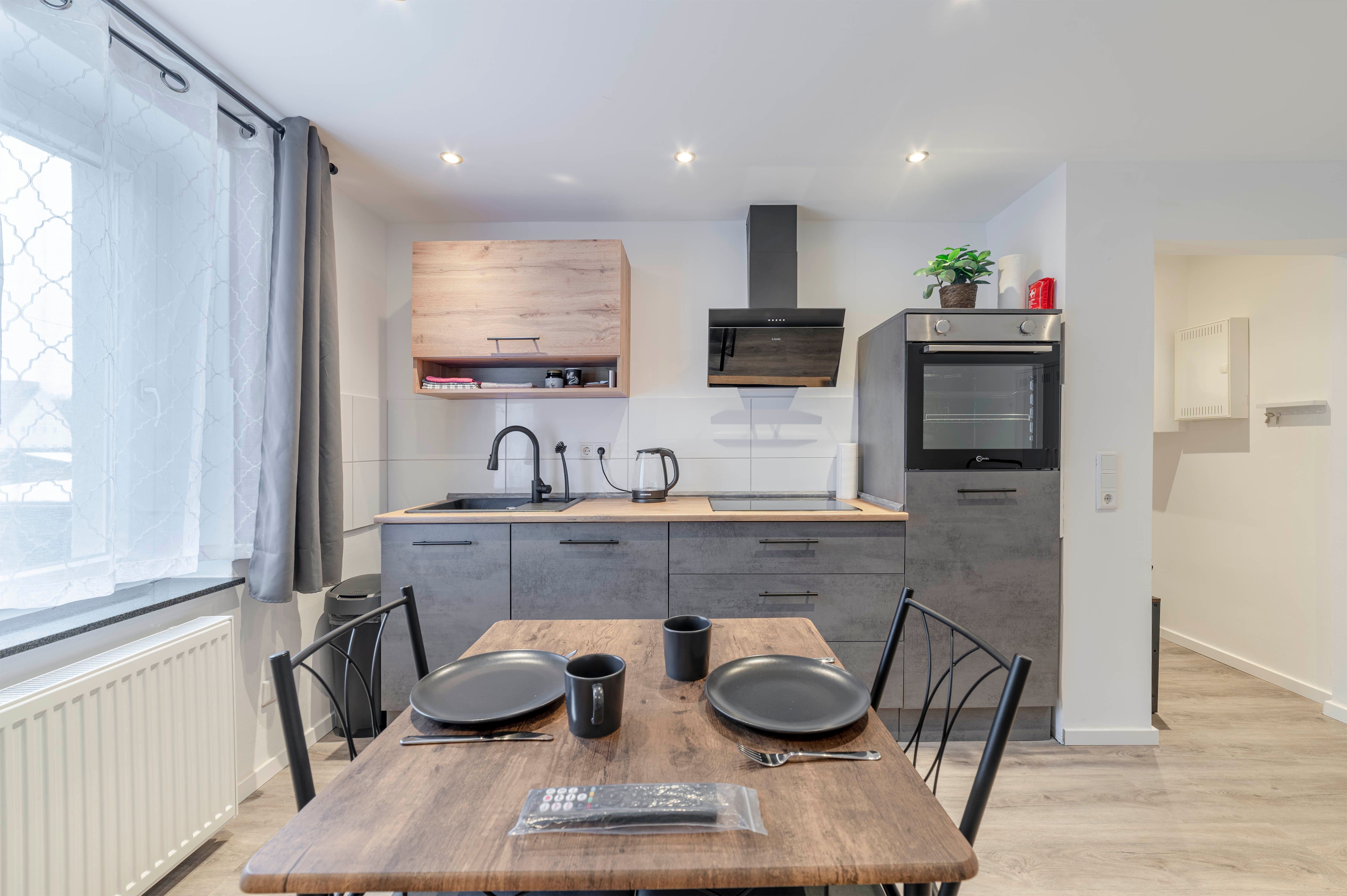 Möbiliertes Apartment, vollausgestattete Küche in Düsseldorf-Neuss, super Anbindung mit S-Bahn und Straßenbahn