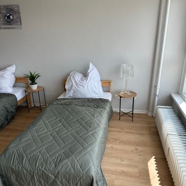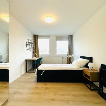 3 Zimmer Wohnung in Mainz, jedes Zimmer verfügt über eigenen TV, Schreibtisch und 2 Bett oder 1 Doppelbett
