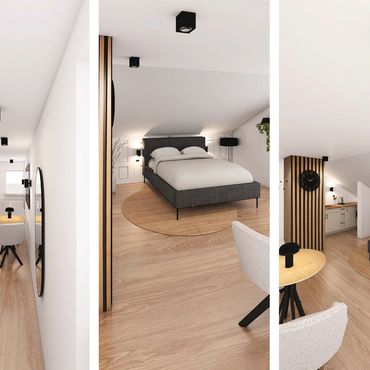 Exklusive 1-Zimmer-Dachgeschosswohnung mit Fitness und Büroeinrichtung