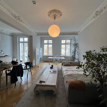 Gemütliche Altbauwohnung am Kollwitzplatz – Designermöbel, großzügiger Schnitt, und ruhige Lage mit Blick ins Grüne