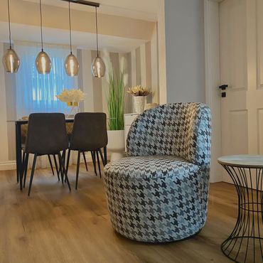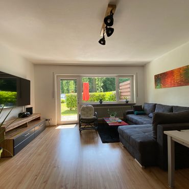 Sonnige, wunderschön möblierte Designer-Wohnung für 1-3 Jahre, Vollausstattung, 2,5-Raum-EG Wohnung, EBK, Garten