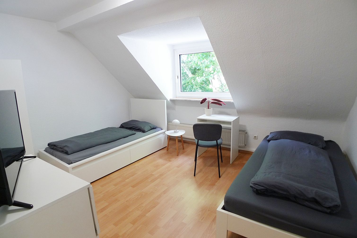 Vollständig möbliertes WG-Zimmer für eine Person in einer neu eingerichteten Wohnung.