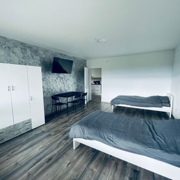 Helles, modernes 4-Zimmer-Apartment mit Einzelbetten, Smart-TVs & malerischem Blick auf die Felder