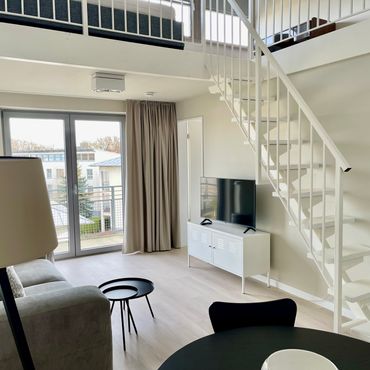Außergewöhnliche Maisonette-Wohnung nahe dem Flughafen mit Balkon und Tiefgarage