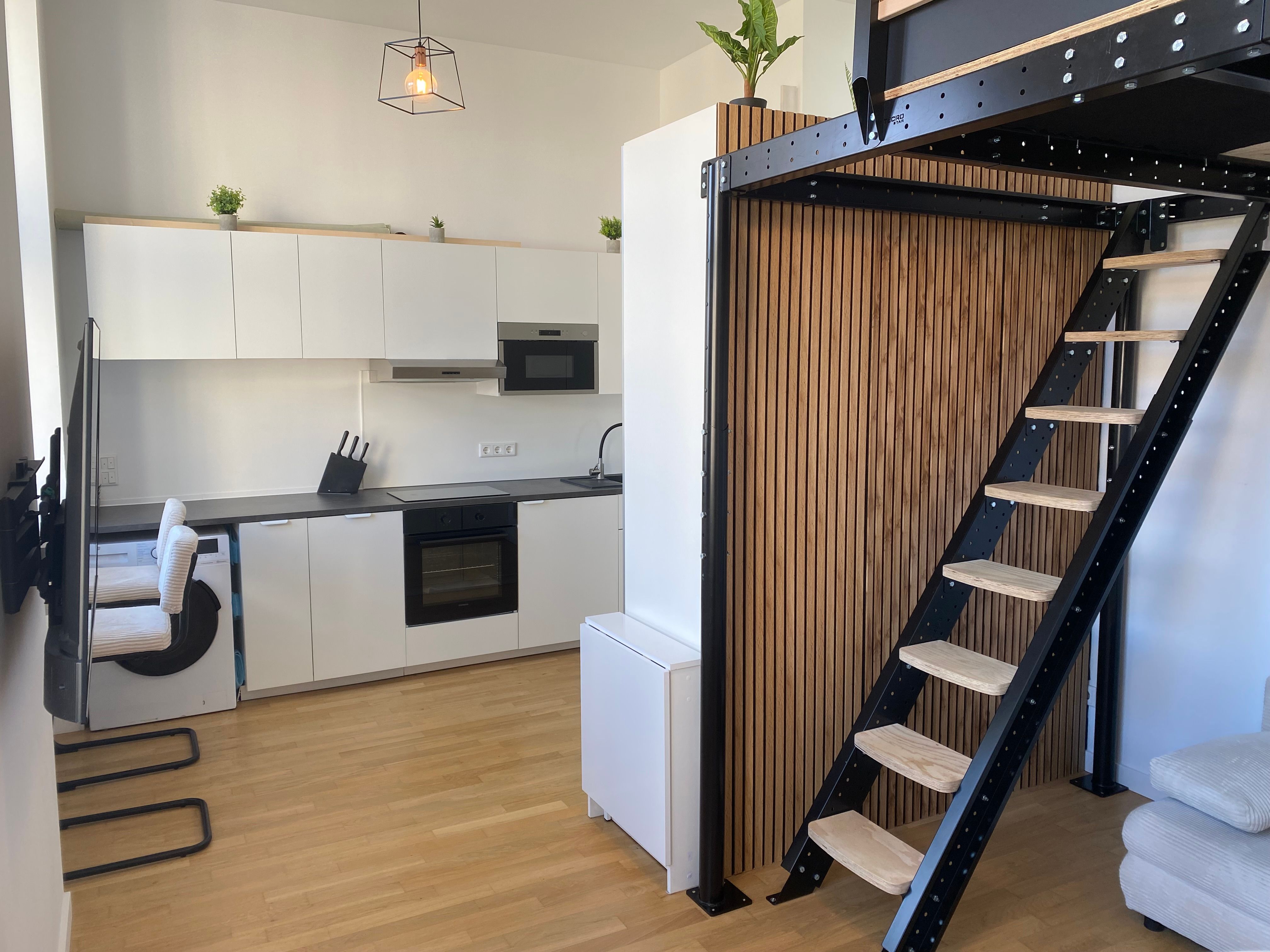 Vollmöbliertes, stilvolles Apartment mit offener Küche, WiFi, nähe Flughafen/ Messe