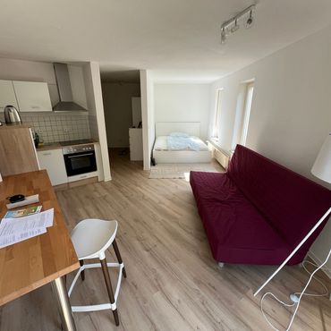 1 Zimmerwohnung (voll möbliert) in einer ruhigen Straße am Fluss