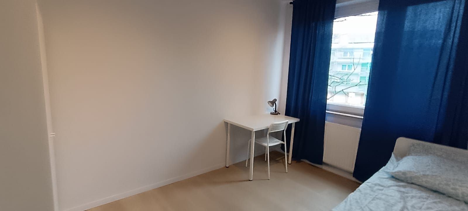 Vollständig möbliertes WG-Zimmer für eine Person in einer neu eingerichteten Wohnung.