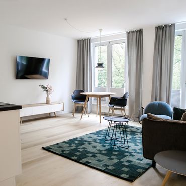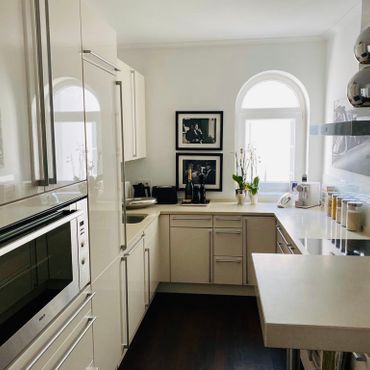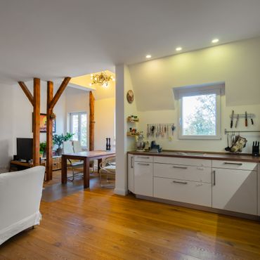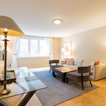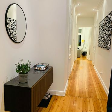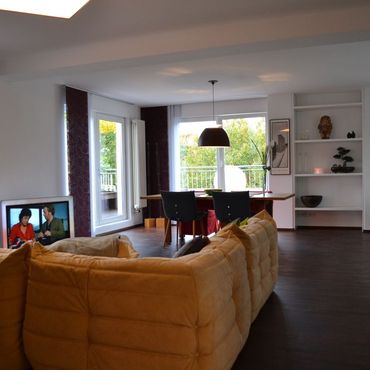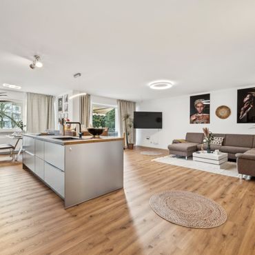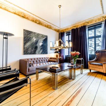 - Mehr als 200 SuchergebnisseDie 4-Zimmerwohnung im 1. Obergeschoss mit Pitchpine-Boden, beeindruckt gleich beim Betreten durch seine exklusive Einrichtung mit Designklassikern. Hohe Decken, fein verputzte Wände, historische Stilelemente wie beispielsweise Stuck, Schiebetür zwischen Wohn- und Esszimmer sind meisterhaft aufgearbeitet.