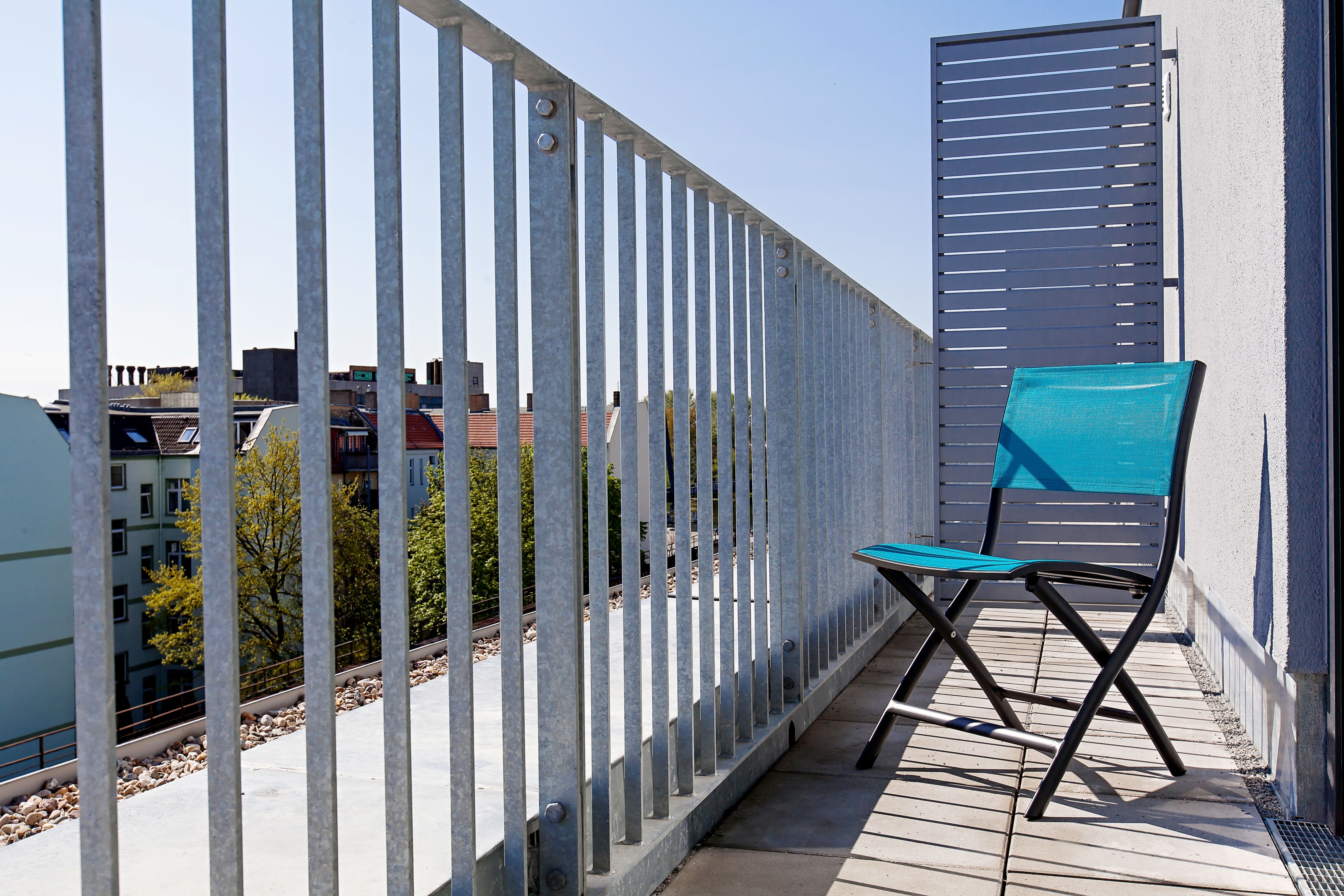 Studio mit Balkon, Fitnessstudio und Ausblick über Berlin an der East Side Gallery