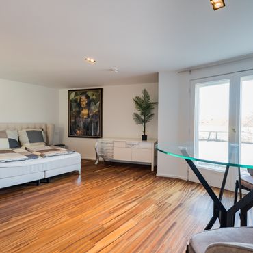 Ruhiges Studio in Leipzig. Dachgeschoss, mit Dachterasse, Blick auf Leipzig Skyline.