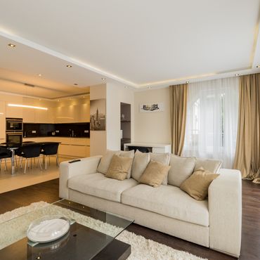 Luxuriöse 2-Zimmer Wohnung bei Frankfurt Messe mit Concierge, Balkon, offener Küche, Badewanne und Stellplatz