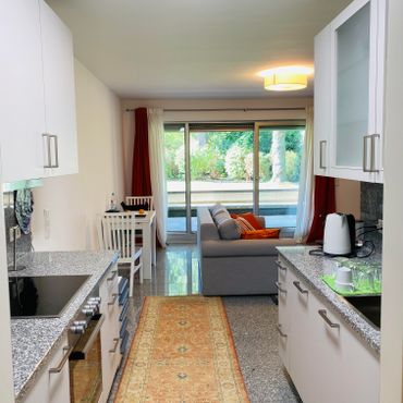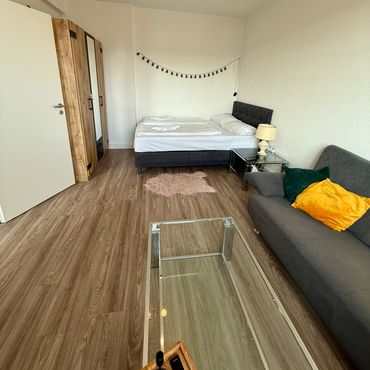 Großzügige, helle und sehr modern eingerichtete 2-Zimmer-Wohnung inkl. WLAN, im Parterre eines Mehrfamilienhauses.