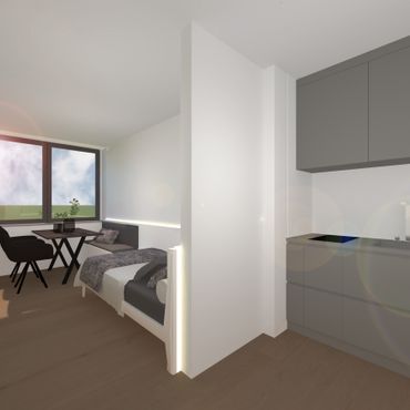 1-Raum-Apartment mit separater Küche