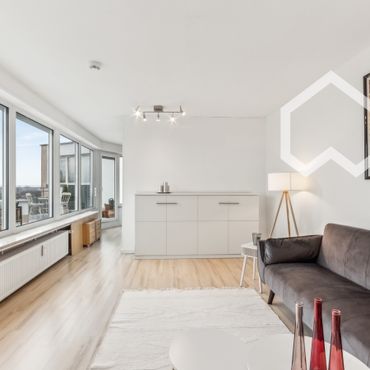 Modernes Apartment am Rheinufer mit Ausblick auf Düsseldorf