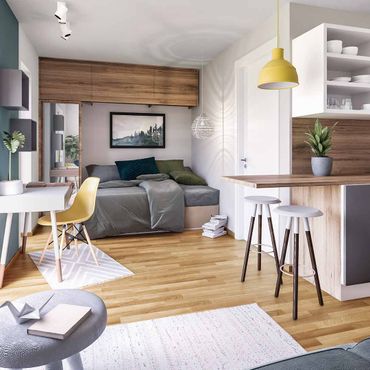 Modernes und helles Studio Apartment mit Balkon in Top-Lage