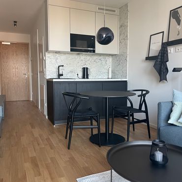 Moderne, helle Wohnung im Mundsburg Apartment Tower mit Blick über Hamburg