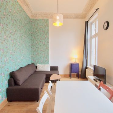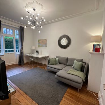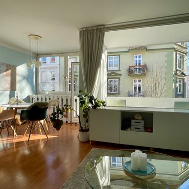 - 38 SuchergebnisseDie 4-Zimmerwohnung im 1. Obergeschoss mit Pitchpine-Boden, beeindruckt gleich beim Betreten durch seine exklusive Einrichtung mit Designklassikern. Hohe Decken, fein verputzte Wände, historische Stilelemente wie beispielsweise Stuck, Schiebetür zwischen Wohn- und Esszimmer sind meisterhaft aufgearbeitet.