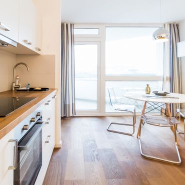 Moderne, helle Wohnung im Mundsburg Apartment Tower mit Blick über Hamburg