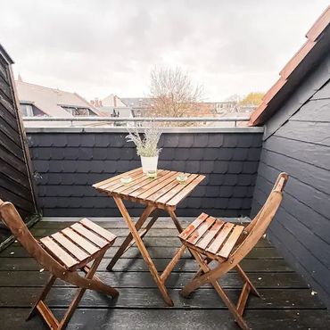 Ruhiges Studio in Leipzig. Dachgeschoss, mit Dachterasse, Blick auf Leipzig Skyline.