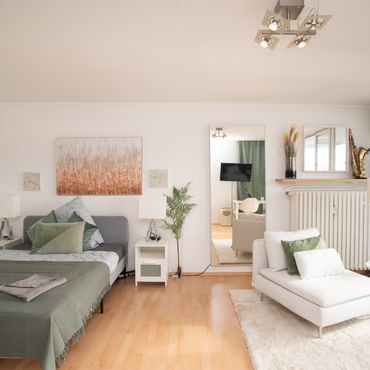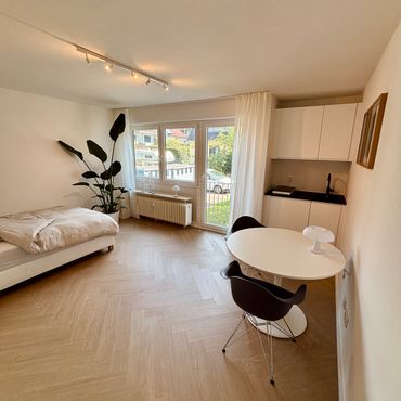 Helles, großzügiges Studio Apartment in München mit viel Licht und gute ÖPNV Anbindung