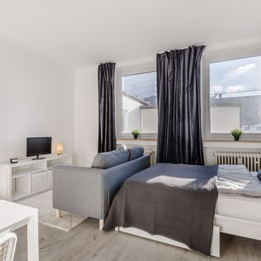 Vollmöbliertes zentrales 1-Zimmer-Apartment mit Smart Design & Stadtblick