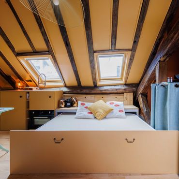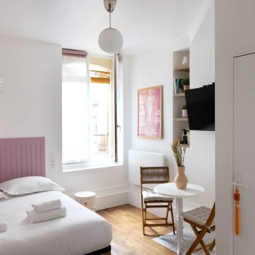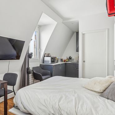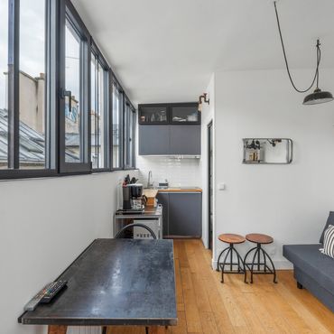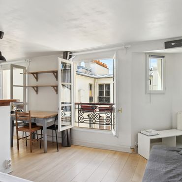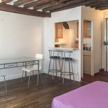 This modern 16m2 studio apartment is located in the heart of the Marais, one of Paris's most emblematic and historic districts.