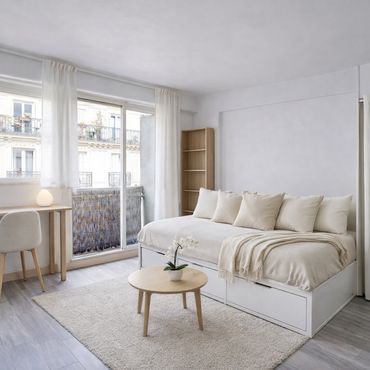 Bright studio with balcony, sleeping area & workspace – Central Paris