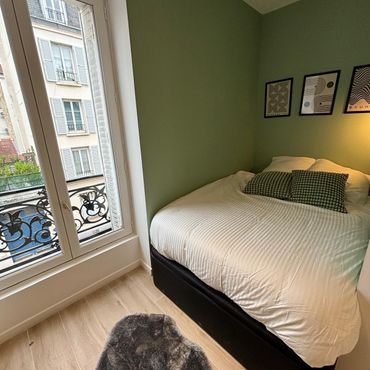 Center of Marais for Young Professionals, couples and Expats in Paris – Separate Office, Full Bathroom with Tub, Queen-Size Bed