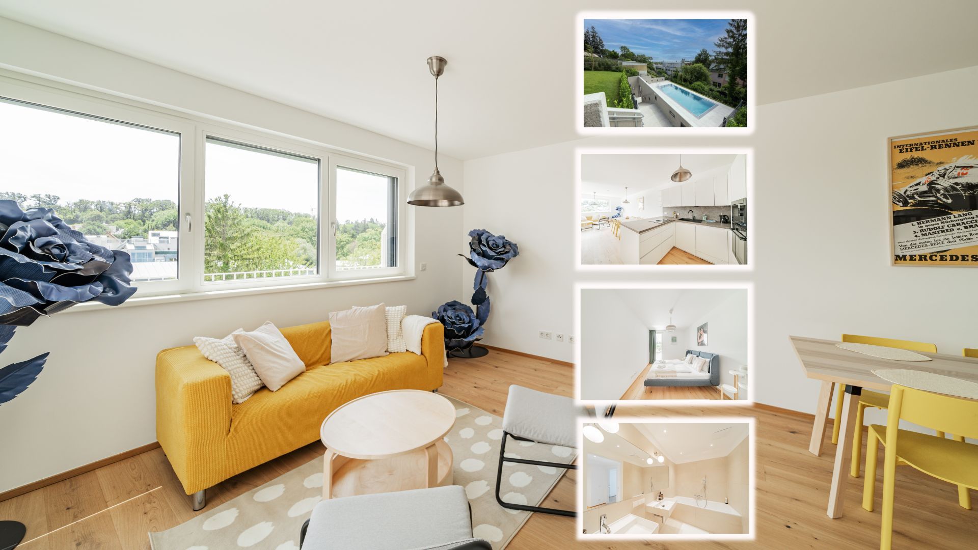 Sonnenoase mit Blick über die Wiener Skyline & Prater, 1 Minute zur Ubahn 2.800 € pro Monat 3 Zimmer 4 Erwachsene 84 m²