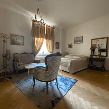 Neuwertige möblierte 2-Zimmer Terrassen-Wohnung mit eigenem Eingang in Jugendstil Villa