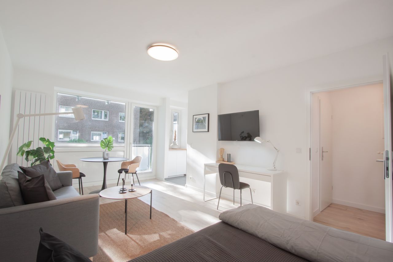 Das angebotene Studioapartment befindet sich in einem sehr gepflegtem Mehrfamilienhaus in Düsseldorf-Urdenbach. Das stilvoll eingerichtete Apartment verfügt über ein modernes Wohn- und Schlafzimmer mit angrenzender Küche, einem Badezimmer und einer Diele. Besonders zu erwähnen ist der große Sonnenbalkon und Garten mit Westausrichtung! Alle Räume sind vollausgestattet und bieten alles für den alltäglichen Gebrauch. Die Küche verfügt über Kochutensilien, Ceranfeld, Spülmaschine, einer Senseo Ka...
