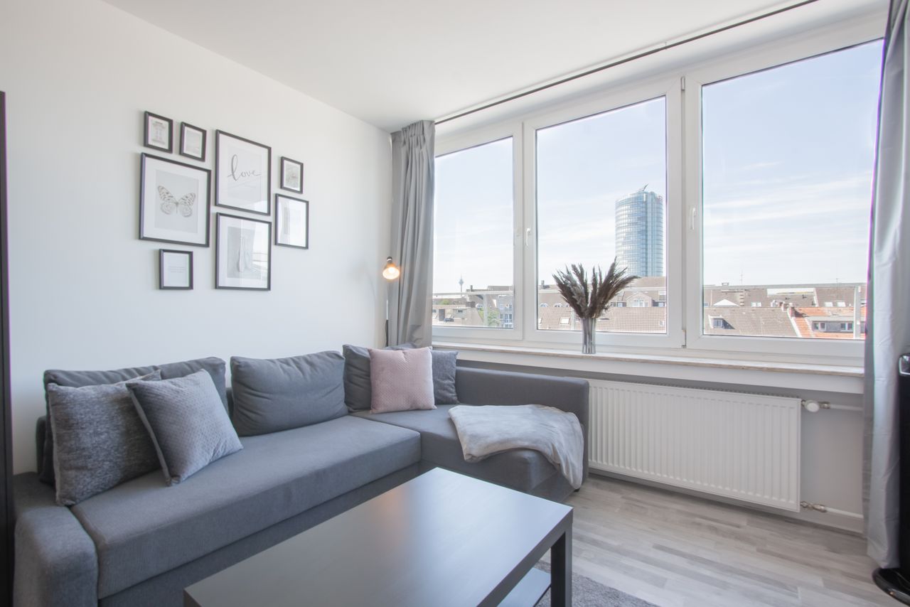 Der Wohn-/Schlafbereich ist unter anderem mit einer gemütlichen Schlafcouch und einem Smart-TV ausgestattet. Moderne Wohnaccessoires sorgen für einen ganz besonderen Wohlfühlcharakter. Die ausgewogene Mischung aus klassischen Elementen und modernem Design beschreibt den Stil der Wohnung. Die Küchenzeile bietet Ihnen alles für den täglichen Bedarf, sowie das Badezimmer. Das Highlight der Wohnung ist der wunderschöne Blick über die Dächer von Düsseldorf.