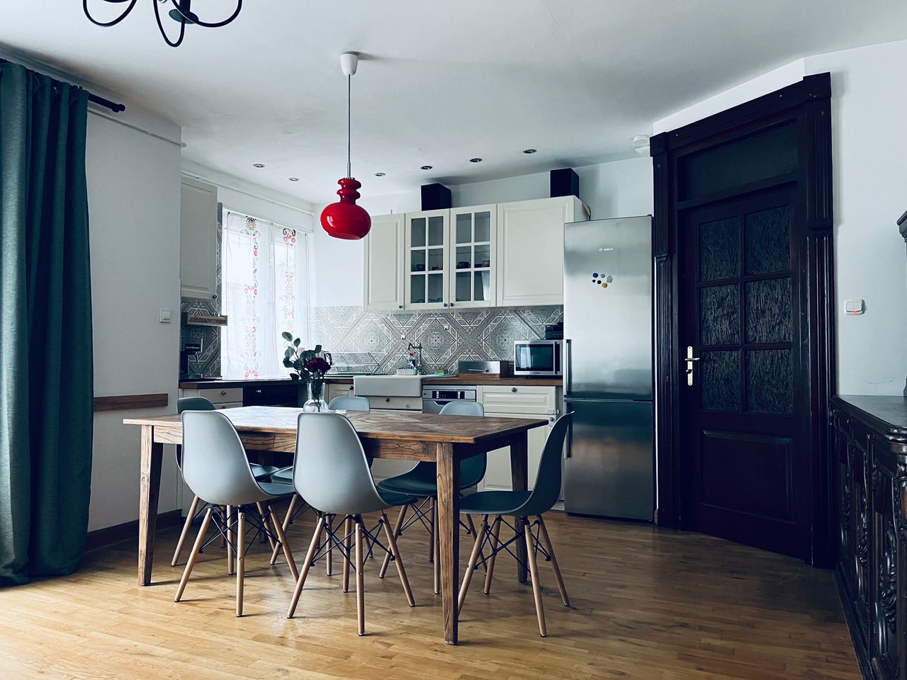 Sie finden die 60 Quadratmeter große Wohnung im 3. Stock, in einem ruhigen 50-Jahre-Bau. Der eine Teil des Wohnzimmers verfügt über ein gemütliches Schlafsofa (ausklappbar) und einen Smart TV, der andere Teil bietet einen großen Esstisch / Arbeitstisch mit sechs Stühlen, eine offene, hervorragend ausgestattete Küche (Kaffeemaschine, Herd mit Ceranfeld und Backofen, großer Kühlschrank mit Gefrierfach, Mikrowelle, Radio etc.). Das großzügige Schlafzimmer enthält ein bequemes Doppelbett und einen K...