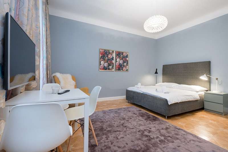 Das Apartment erwartet Sie mit einer modernen und luxuriösen Einrichtung. Die hochwertige, helle Ausstattung bietet tollen Komfort und Sie finden hier alles was Sie für einen längeren Aufenthalt in Wien benötigen. Ausstattung: Elektroherd, Backofen, Kühlschrank, Gefrierschrank, Nespresso Kaffeemaschine, Wasserkocher, Toaster, Bratpfanne, Kochtopf, Küchengeschirr, Sofa, TV, Doppelbett, Stockbett für ein Kind, Fön, Trockner , Bügelbrett, Bügeleisen, Fahrstuhl, Waschmaschine, Staubsauger, Internet,...