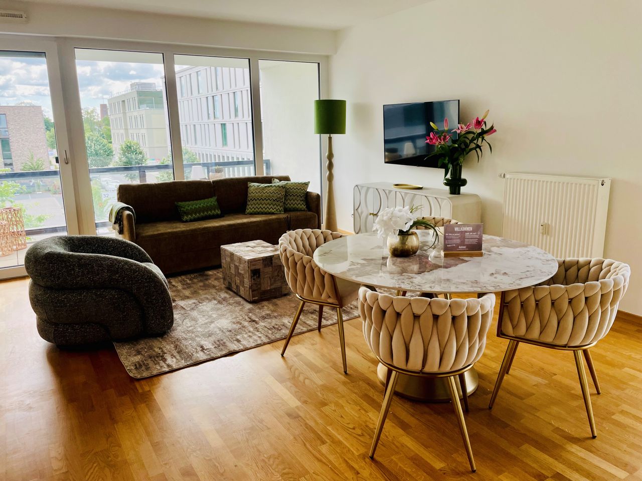 In unserem daydream Apartment "Albert Einstein Suite im Wissenschaftspark", einer modernen und geschmackvoll eingerichteten Unterkunft, die zu einem komfortablen und angenehmen Aufenthalt einlädt. Ob geschäftlich oder privat, ob Kurztrip oder Langzeitunterkunft: Fühlen Sie sich wie zuhause! Das Echtholzparkett verleiht dem Apartment eine warme und einladende Atmosphäre. Im Wohnzimmer befindet sich ein Smart-TV und ein Bluetooth-Lautsprecher. Die voll ausgestattete Küche bietet alles, was Sie ben...