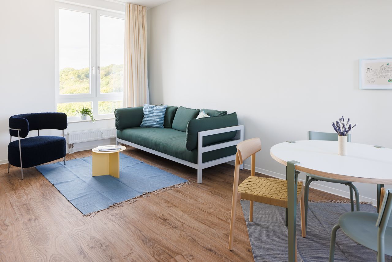 BITTE BEACHTEN: Der Einzug ist nur am 1. und der Auszug am letzten Tag des Monats möglich. Genieße eine all-inclusive, voll möblierte Wohnung mit 2 Zimmern. Entworfen für optimalen Komfort und Privatsphäre, mit Zugang zu Community Spaces und der nahen Natur. Was beinhaltet ‘All-inclusive’? - Nebenkosten - Strom - Superschnelles WLAN - Möbel - Zugang zu Community Spaces - Events vor Ort (Fitness, Drinks usw.) - Mobile App zur Verwaltung aller Dinge an einem Ort - Rabatte in lokalen Geschäften...