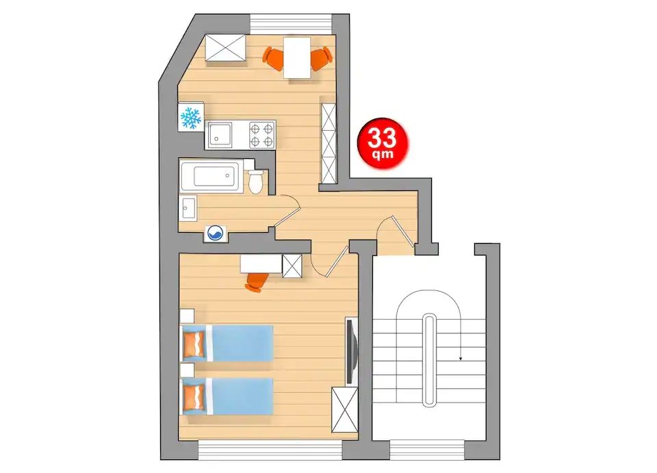 33 m2, Stock: 11 Zimmer2 Betten2 Personen