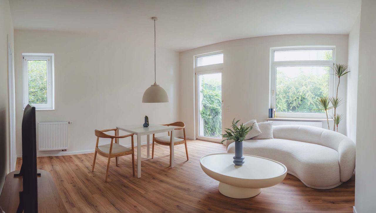 Dieses luxuriöse Boutique-Apartment liegt direkt am Französischen Garten in Celle und bietet höchste Wohnqualität. Ein separates Schlafzimmer, ein stilvolles Wohnzimmer mit Designermöbeln und eine voll ausgestattete Küche sorgen für Komfort und Eleganz. Hochwertige Materialien, ruhige Lage, ein eigener Parkplatz und exzellenter Service machen Ihren Aufenthalt unvergesslich. Ideal für Gäste mit Anspruch an Stil, Ruhe und Qualität.