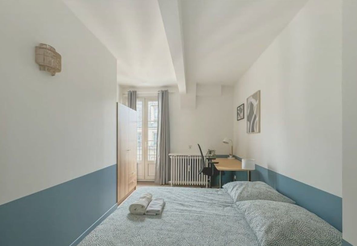 On the 5th floor of a charming building with elevator. In the heart of the 9th arrondissement, close to Printemps Haussmann, Galeries Lafayette and Place Vendôme, the 9th is a very central area! Private space: bedroom with double bed and desk Shared space: fitted and equipped kitchen, shower room and WC Wifi available. Bed linen included. Towel not provided. Turnkey accommodation that adapts to your schedule! - Mobility leases from 1 to 10 months