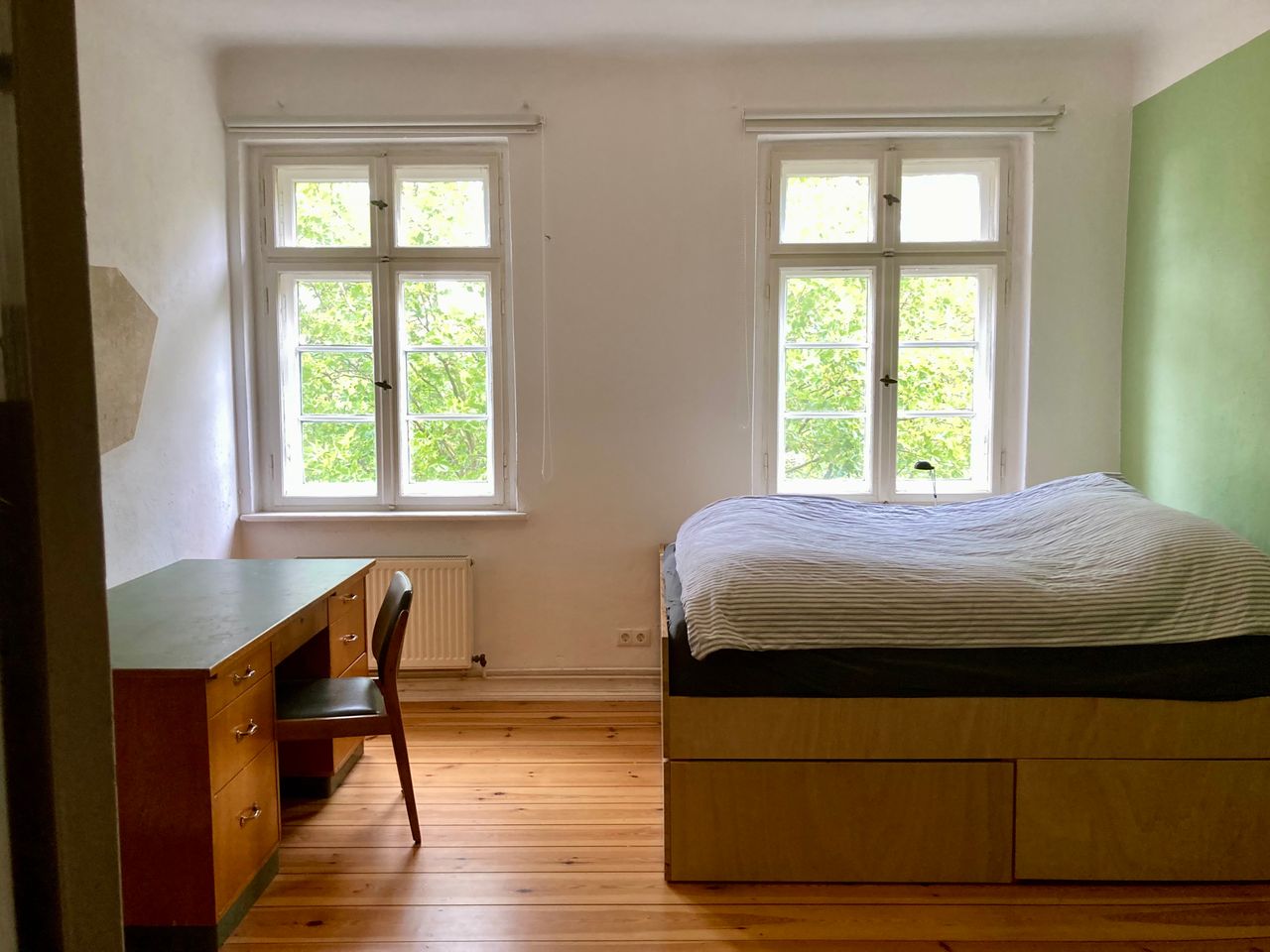 Auf der Loggia, die Richtung Süden zeigt und vom Wohnzimmer ausgeht, lässt sich in der Hängematte die Mittagssonne genießen. Zusätzlich zum geräumigen Wohn- und Schlafzimmer, gibt es ein kleines Zimmer, das zum Beispiel als Kinderzimmer oder zweites Schlafzimmer genutzt werden kann. Ein Schreibtisch ist vorhanden. In der Küche ist ausreichend Platz zum gemeinsamen Kochen und Essen, und als charmantes Detail gibt es die für Berliner Altbauwohnungen typische kleine Kammer zur Küche. Das Badezimme...