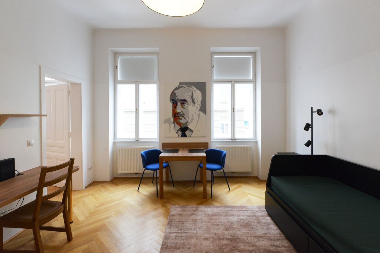 Unser Apartment „Charakterköpfe“ befindet sich in Wien 12., Tanbruckgasse 33/5 und ist mit öffentlichen Verkehrsmitteln sehr gut erreichbar. Das moderne und vollmöblierte Apartment mit einer Größe von 41 m², verfügt über ein Schlafzimmer, ein Wohnzimmer, eine voll ausgestattete Küche, einen Vorraum, ein Bad (Dusche und Waschmaschine) und ein WC. Das Apartment wurde mit Kunstwerken von Walter Hachleitner gestaltet. Die Preise gelten bei Belegung bis zu 2 Personen. Ab 3 Monaten und 1 Tag fällt...