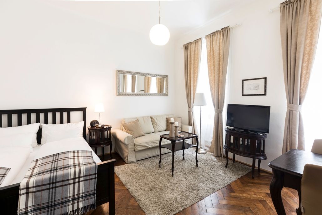 Unser frisch renoviertes Studio-Apartment liegt zentral und dennoch ruhig, perfekt für Ihre Städtereise. Es befindet sich in einem klassischen Gebäude in einer ruhigen, zentralen Gegend und wurde vor kurzem modernisiert. Studio-Ausstattung: Der großzügige Wohn-Schlafbereich ist unterteilt in: • Wohnbereich: Mit Esstisch, Sofa (ausziehbar als Bett) und TV (inkl. Netflix), das sowohl vom Sofa als auch vom Bett aus genutzt werden kann. • Schlafbereich: Mit einem großen Bett und einem geräumigen ...
