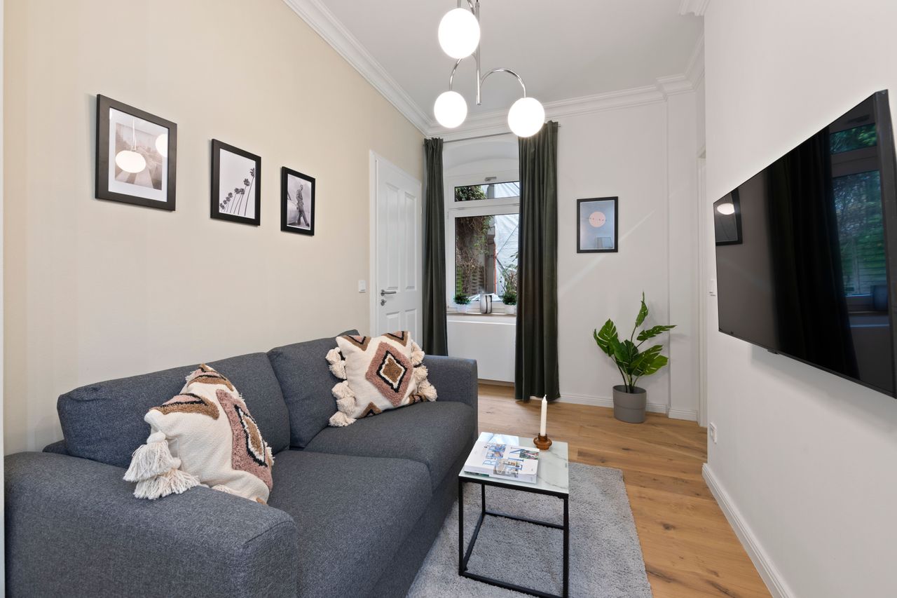 Bei Anmietung von unter 6 Monaten wird eine VAT Steuer von 7 % auf den gesamten Mietpreis berechnet. Die Wohnung sorgt mit der hochwertigen modernen, sowie gemütlichen Einrichtung für ein besonderes Wohnambiente. Die Wohnung verfügt über 1 Schlafzimmer mit einem komfortables Kingsize Boxspring Bett und bietet trotz der zentralen Lage auf dem zum Innenhof gelegenen, ruhigen Balkon eine Möglichkeit zum Entspannen und Wohlfühlen. Das Badezimmer ist mit einer bodentiefen Dusche ausgestattet und ermö...