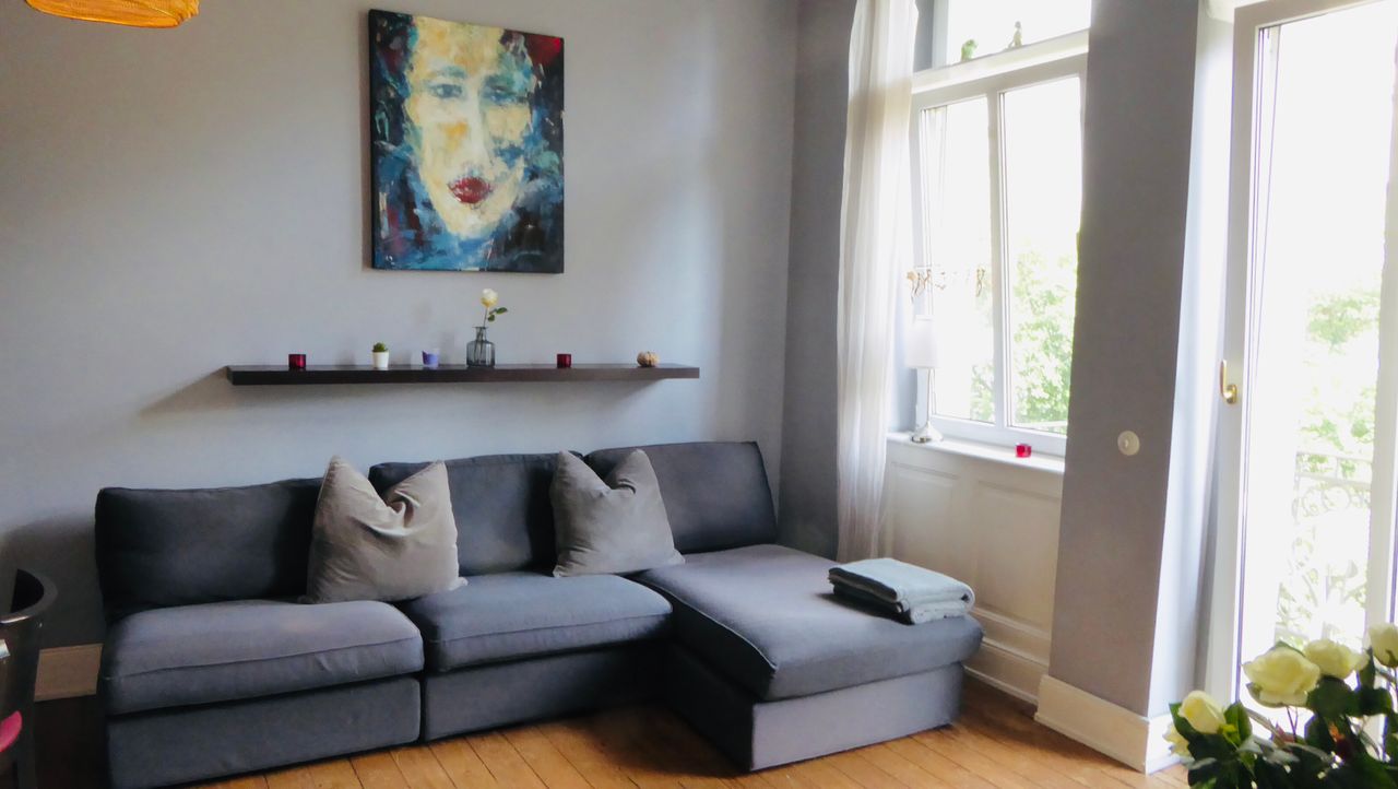 Charmantes Domizil im Herzen Wiesbadens mit Jugendstilkomfort in der Nähe des historischen Zentrums, Bahnhof, Oper, Einkaufsmöglichkeiten, Restaurants ...alles ist zu Fuß erreichbar. Sie betreten meine Wohnung durch Ihre eigene Tür in einen kleinen Flur, von wo aus Sie das Schlafzimmer (zwei Betten) und das andere Schlaf-/Wohnzimmer (ein Bett, Coach und Schreibtisch) sowie Bad und Wohnzimmer mit integrierter Küche, Esstisch und Sofa betreten. Es hat 2 Balkone und Sonnenschein den ganzen Tag mi...